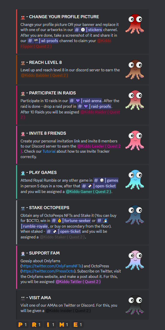 When collecting all 8 items or 7 + **Golden key** please go to <mark style="background-color:yellow;">#</mark> <mark style="background-color:yellow;"></mark><mark style="background-color:yellow;">**🎫┊open-ticket**</mark> channel in our Discord and open a support ticket. We will check everything out and send you the `@Prime List` [role NFT](https://whitepaper.octopeeps.com/lost-toys-quest/wl-roles-nfts) to be able to create a snapshot before [**PRIME MINT**](https://whitepaper.octopeeps.com/lost-toys-quest/broken-reference) phase.